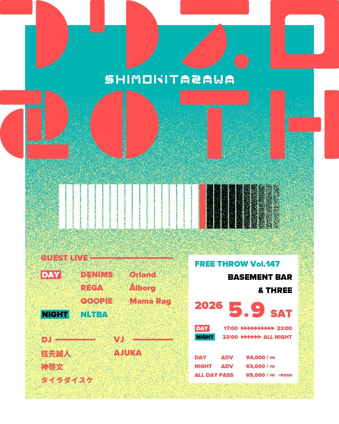 5.9(土) 『-FREE THROW 20th Anniversary-』 @下北沢BASEMENTBAR / THREE